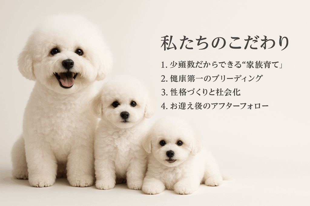 一頭一頭を家族として大切に育てること、健康で性格の安定したビションを送り
